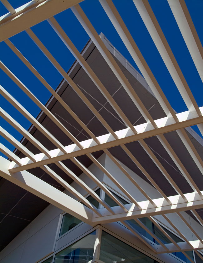“We used aluminum composite metal panels on the soffits and vertical panels on the walls; the sunscreen louvers matched perfectly,” said Ryor. “They turned out very well in both their look and color match.”