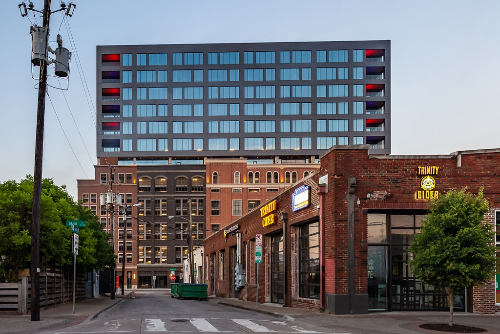 The Stack design team spent approximately 18 months reviewing materials before final selections were made, according to David Freisner, construction manager, Hines, who said weathered steel cladding originally was reviewed for the upper massing to fit the overall design aesthetic of Deep Ellum but was dismissed due to panel weight and cost challenges.