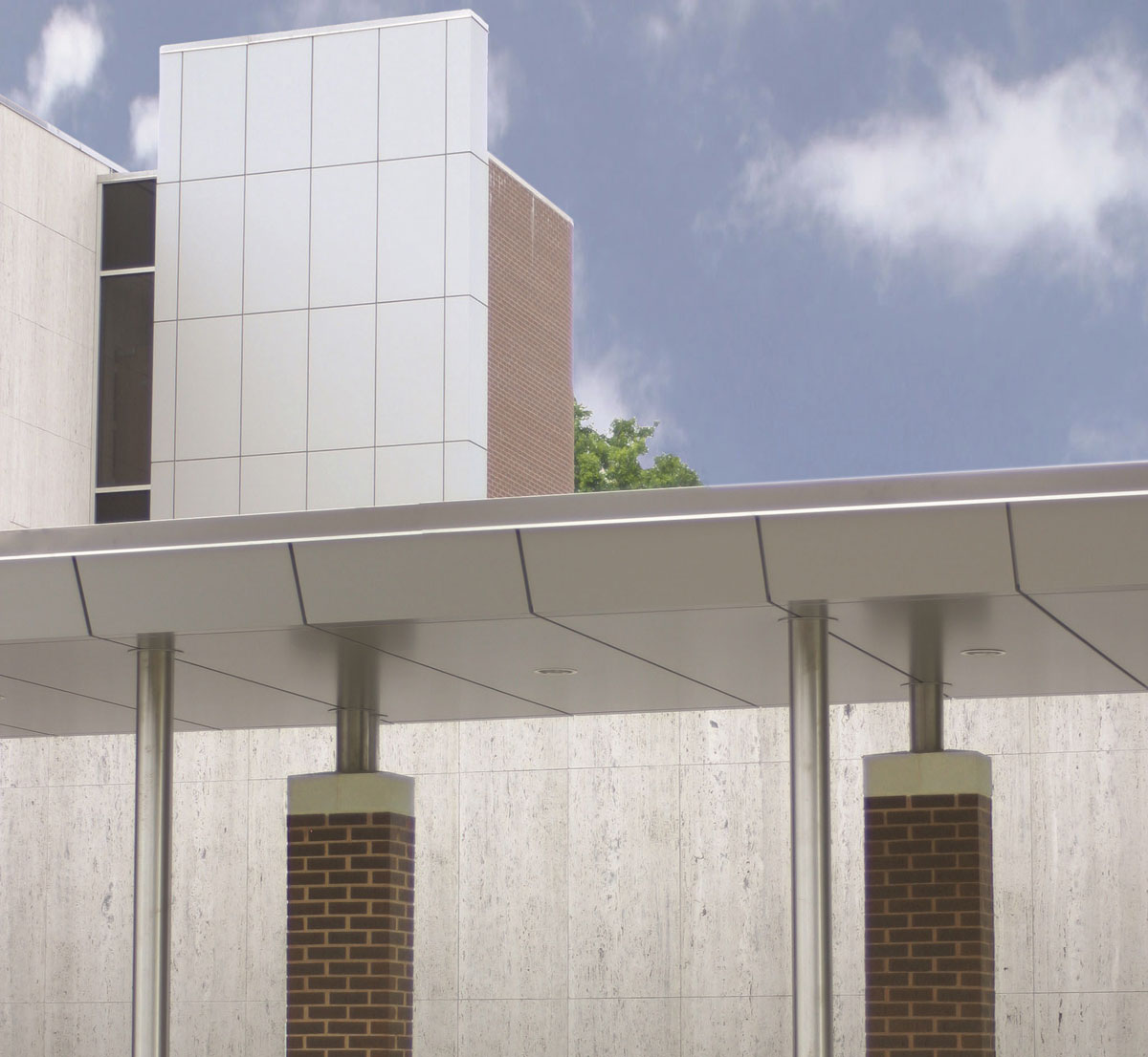 More than 8,200 sq. ft. of 4mm ALUCOBOND® Material in a Champagne Metallic color was used for the project. The ACM product was fabricated, including field fabrication, by Universe Corporation of St. Louis, Missouri, and attached by their rear-ventilated “rainscreen” system. In recognition of their work on the project, Universe Corporation received a 2005 St. Louis Chapter AIA Design Award for craftsmanship.