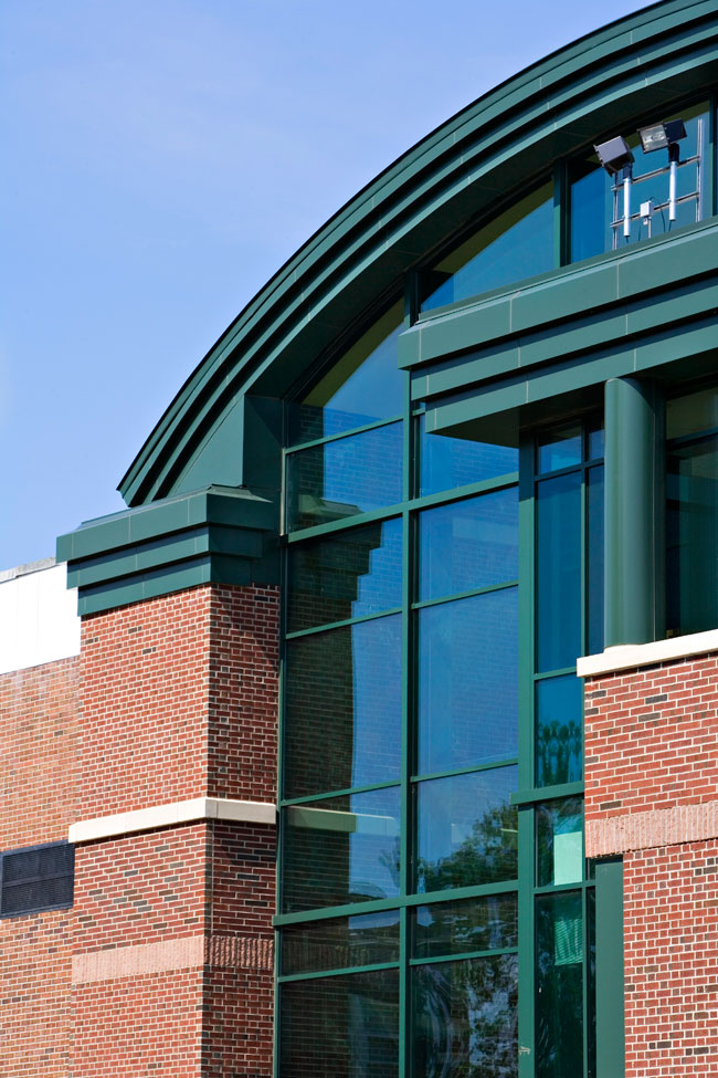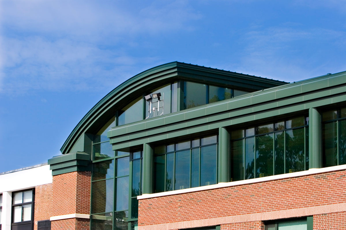 Another durable product specified for the addition was ALUCOBOND® PLUS aluminum composite material (ACM) with the fire-rated core by 3A Composites USA, Inc., in the 4 mm thickness and custom Hartford Green color. ALUCOBOND® consists of two sheets of .02” aluminum thermobonded to a plastic core. ALUCOBOND® provides extraordinary flatness and rigidity, excellent formability, low weight and outstanding weather resistance.