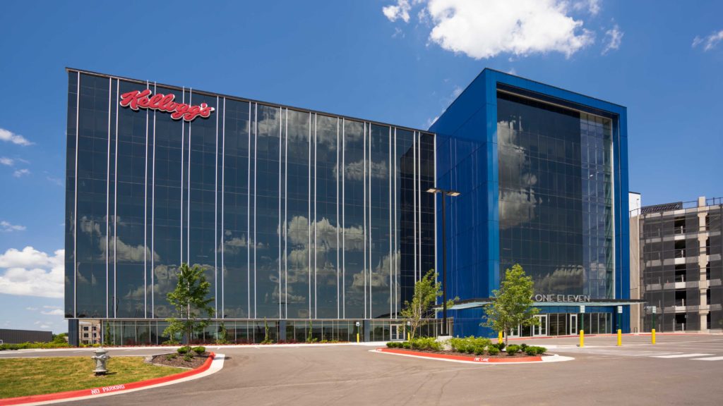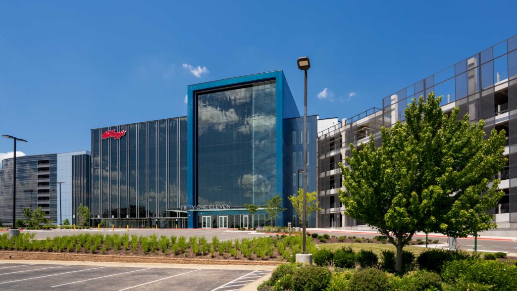 The $24-million 110,000 square-foot six-story office building and adjacent six-floor parking garage were designed by Core Architects Inc. of Rogers, Ark., in a unique orthogonal “L” shape to take advantage of the site’s elevated topography and surrounding scenic views. The office building offers visual access to panoramic views on each floor, while the top level of the parking garage features a 2,500 square-foot event space with patio that overlooks nearby Walmart Arkansas Music Pavilion, an outdoor amphitheater. Additional occupant-focused amenities include a café and fitness center.