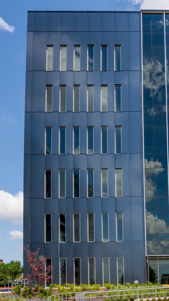 Ace Glass Construction installed the ALUCOBOND® PLUS panels with Carter Metal Panel EVO extrusions in a rainscreen system.