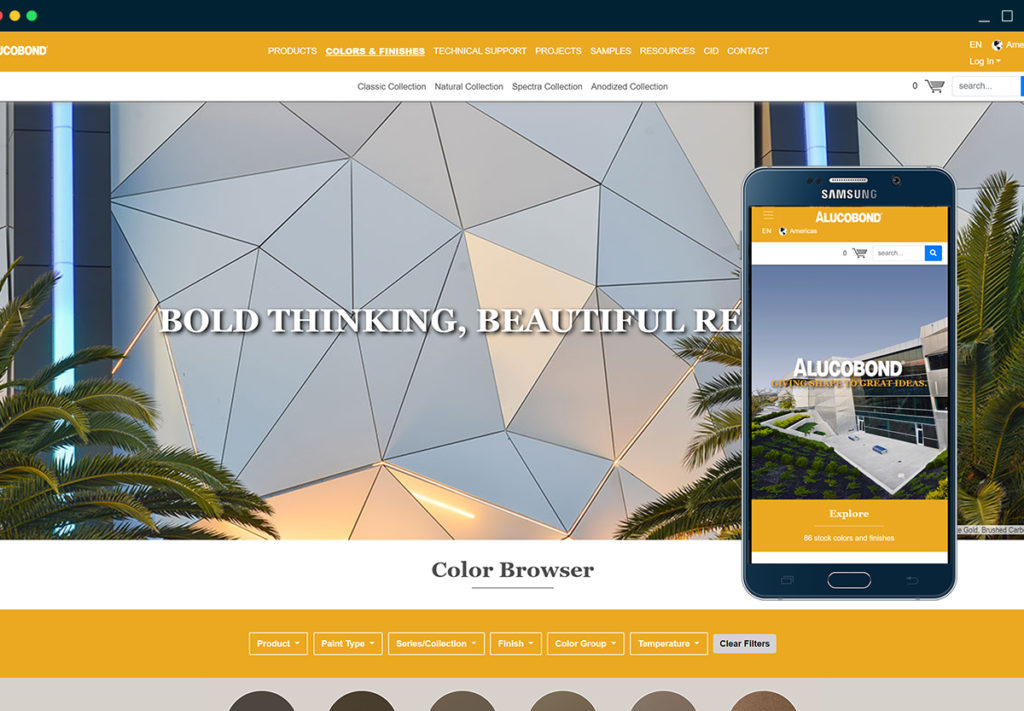 The new ALUCOBOND® Color Browser offers specification filters to dial down to the perfect color by finish, temperature or color group and then allows the viewer to easily order samples to see the true color before specifying. Inspiration can also be found in the new Project Gallery where 3A Composites is proud to recognize so many outstanding architectural designs that have been achieved through the dedicated efforts of the architectural community and the ALUCOBOND® fabrication and installation partners across the Americas.