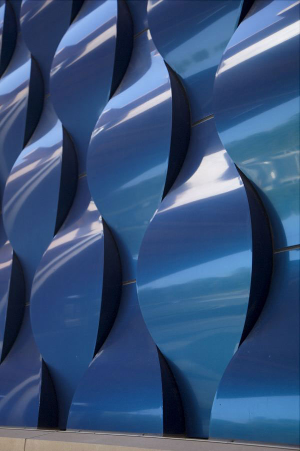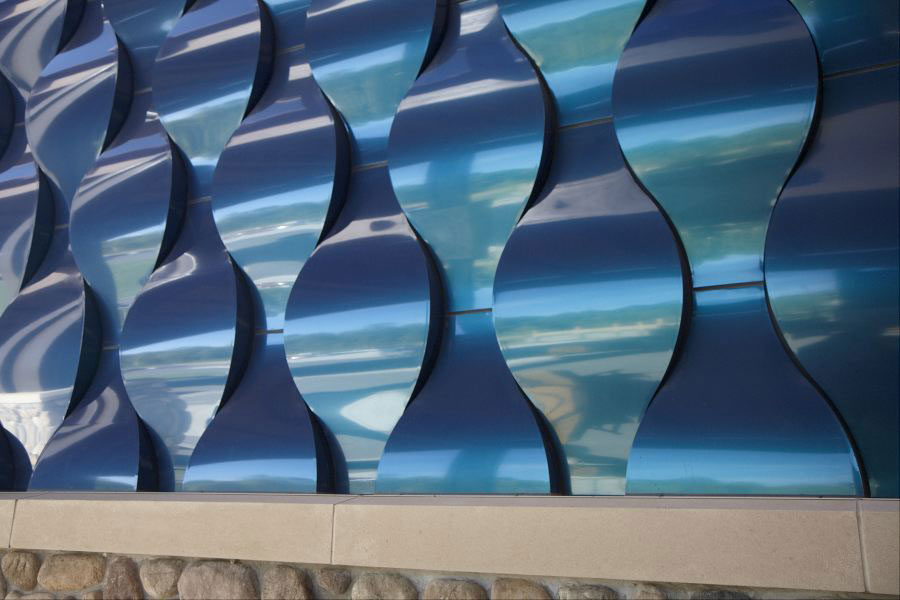 “The ALUCOBOND® Spectra is a very eye-catching material that could be shaped into a form that appears to undulate,” said Wedge. “Different colors are viewed from different angles. The color scheme ranges from blue to green. It really does seem to shimmer like the lake. We couldn’t have gotten this effect from any other product on the market. We wanted to recreate the shimmer of the lake on a bright, sunny day.”